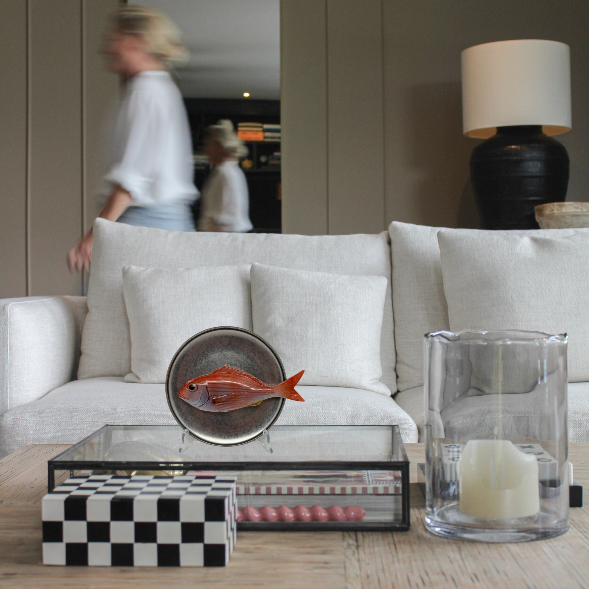 Alle vissen zijn van keramiek en handgemaakt, daardoor is elke vis uniek! De combinaties van de vissen op de borden stellen wij zelf samen. We vinden borden in bijpassende kleuren en het juiste formaat.