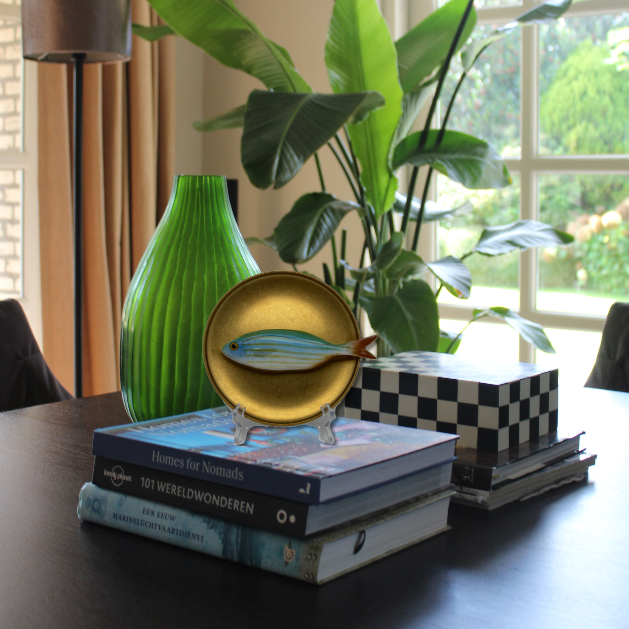 Orata medio op wit met blauwe details op decoratief bord, 21cm