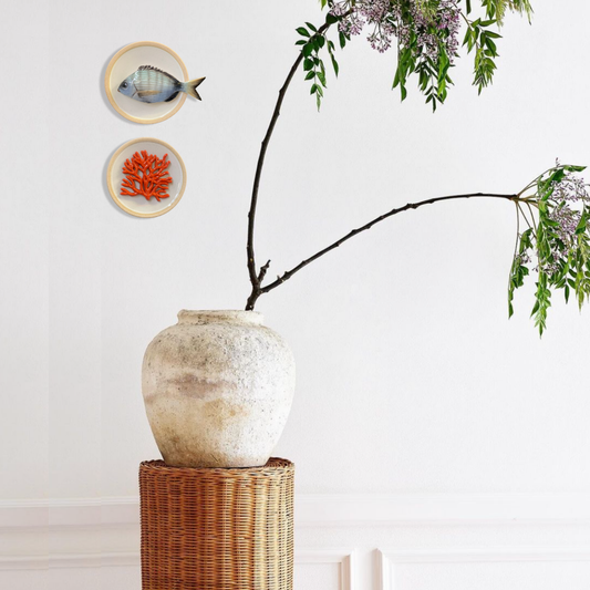 Alaccia/Haring op roze bewerkt bord, 20cm rond