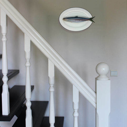 Alaccia/Haring op ovaal wit bord met donker grijze rand