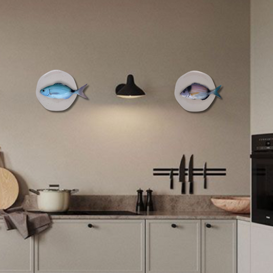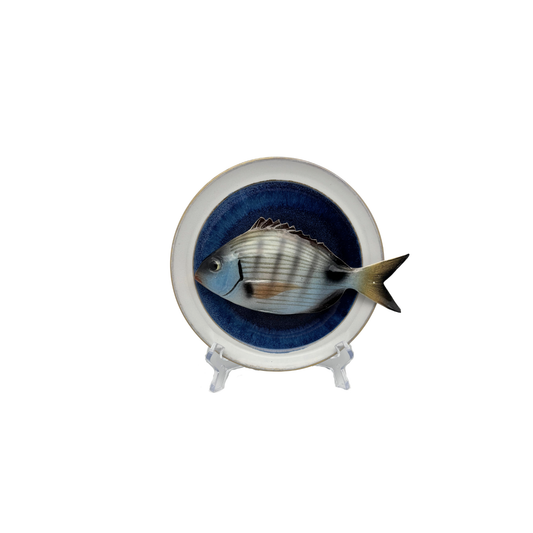 Sarago medio op blauw bord met lichte rand, 17 cm