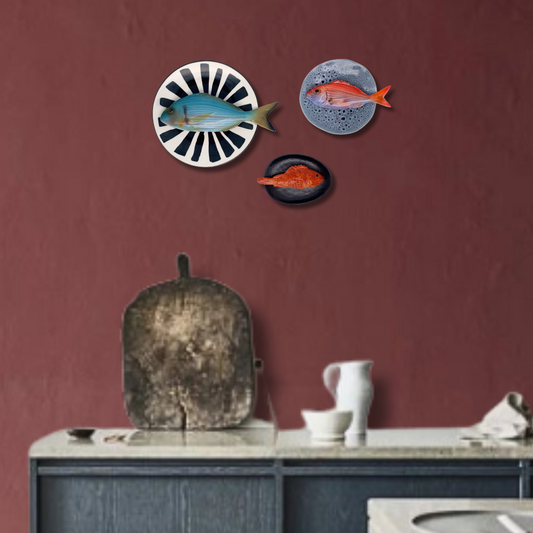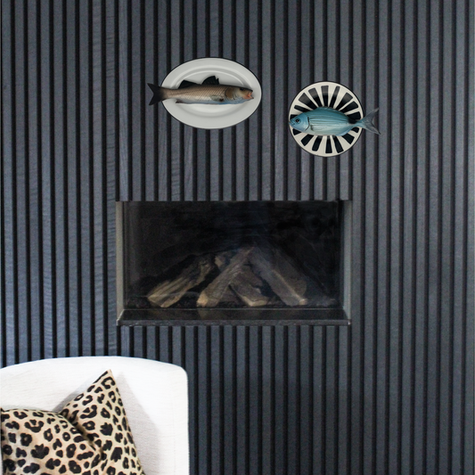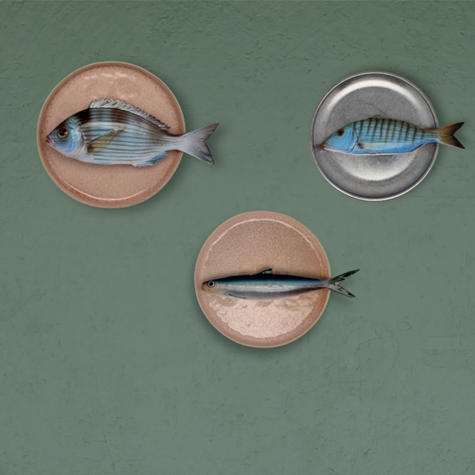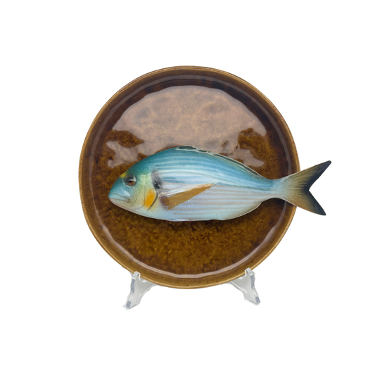 Sarago medio op donker bruin vintage bord, 16 cm rond