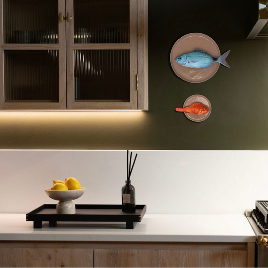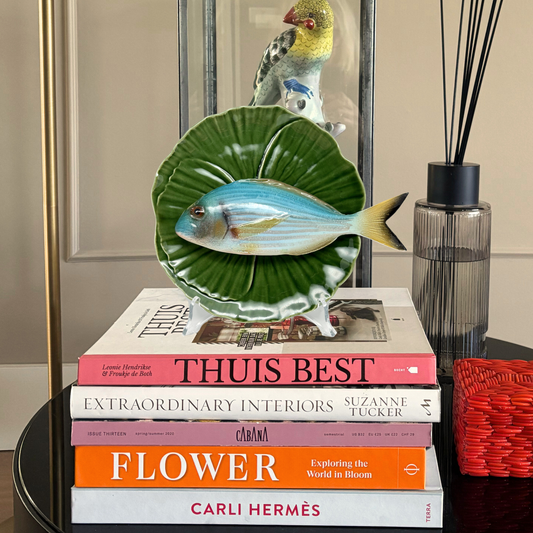 Sarago grande op blauw/groen bewerkt bord, 28cm rond