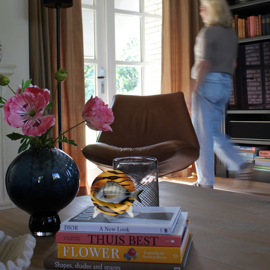 Orata medio op bord met zwart/wit decoratie, 20cm rond