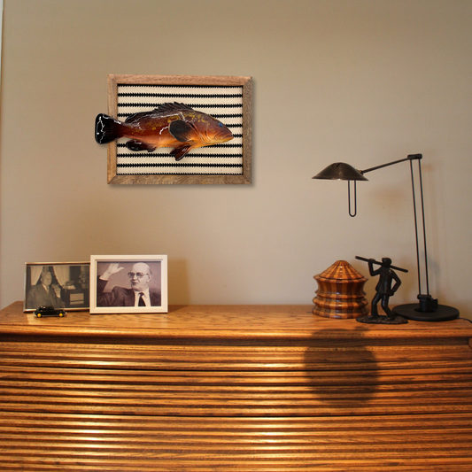 Cernia multo grande in een gestoffeerd houten lijst streep, 40X31cm
