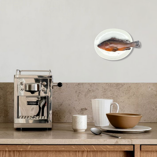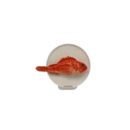 Cernia medio op een ovaal wit bord, 22X19 cm