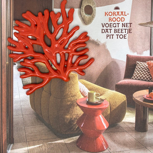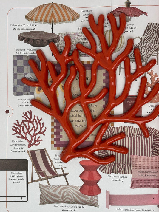 Koraal keramiek groot ingelijst met passe-partout off-white, 50X40cm
