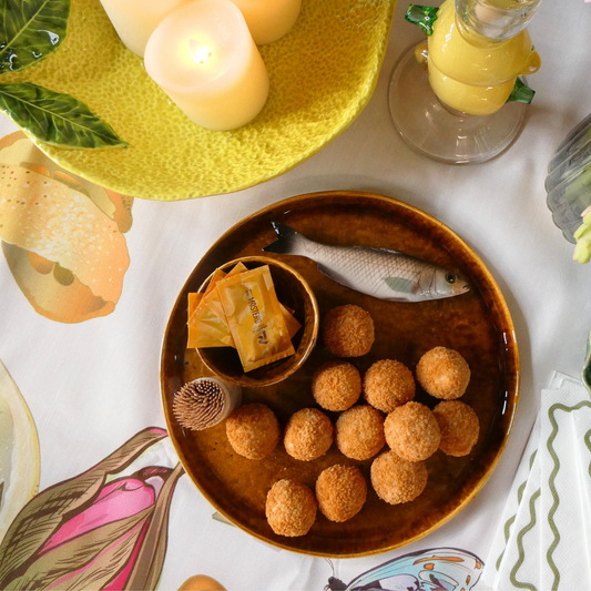 Spigola medio Borrelbord met dipschaaltje - bruin/goud 27cm