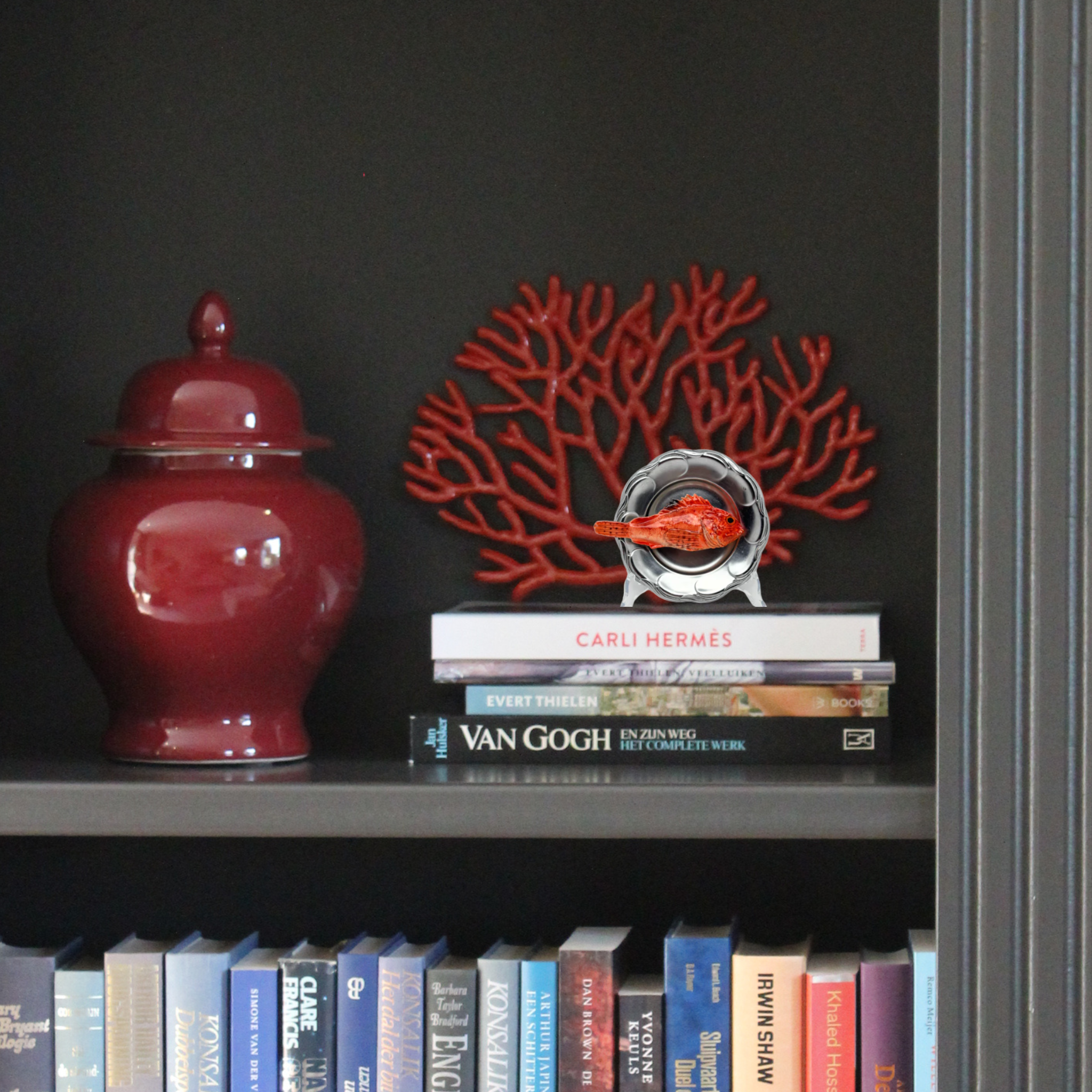 Scorfano marrone op een zeegroen borrelbord incl. dipschaaltje. 26 cm