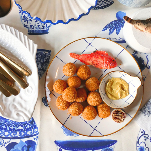 Sardine Borrelbord met dipschaaltje - blauw-wit ruit 26cm