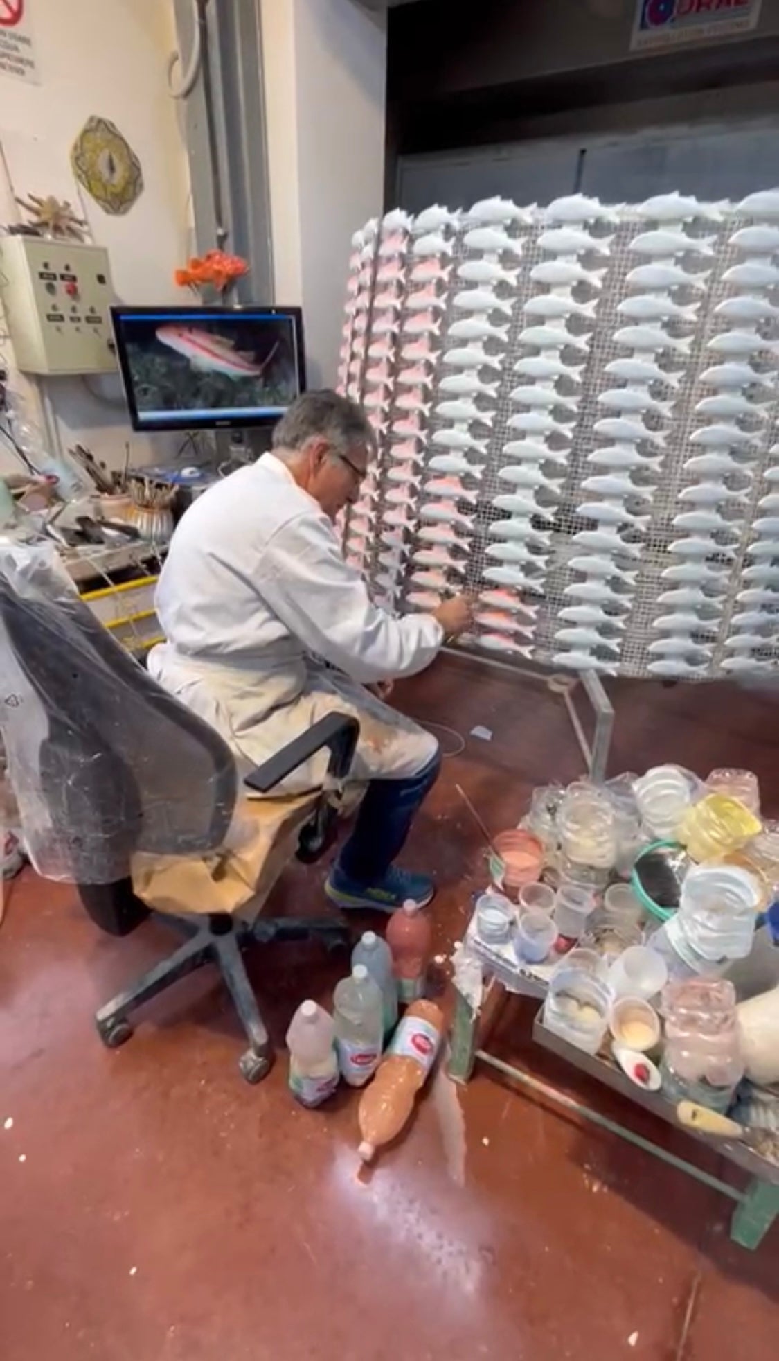 Alle vissen zijn handgemaakt en beschilderd in Italie. De hele familie werkt mee aan het produceren van deze ware kunstwerken. De echte ambacht. Bijzonder om te zien hoeveel tijd en liefde ze er in stoppen. De vele soorten vissen bestaan echt en worden zo exact mogelijk nagemaakt.