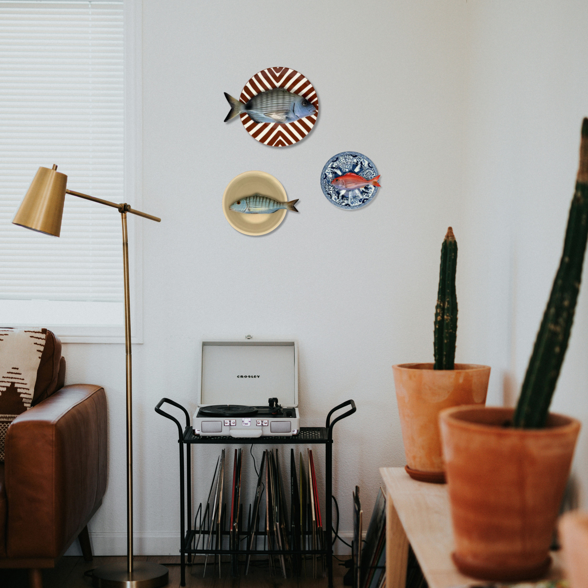 Marmora op zandkleur bord met lichte rand, 20cm rond. Aan de achterkant is een ophanghaakje bevestigd en kan direct aan de wand gehangen worden.
