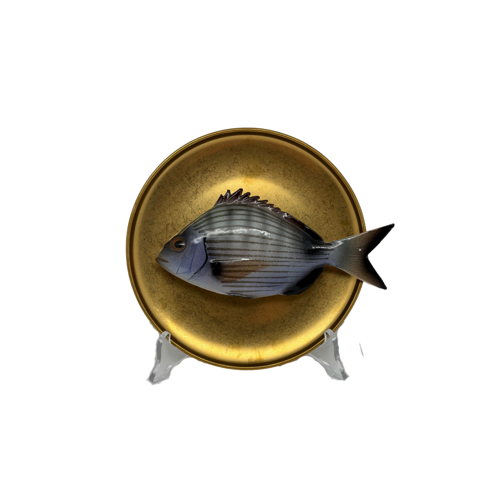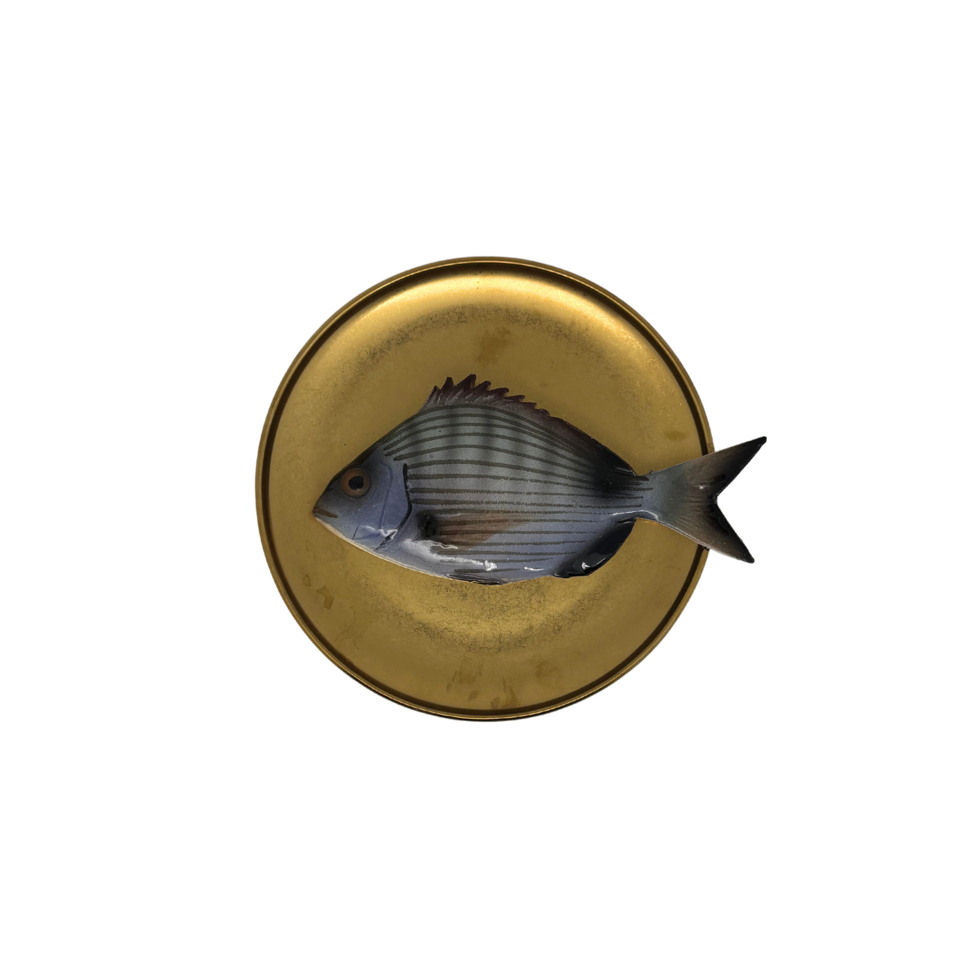 Viatora op antique goud bord, 20 cm rond. Het bord is van metaal. Aan de achterkant zit een ophanghaakje bevestigd en kan direct aan de wand gehangen worden.