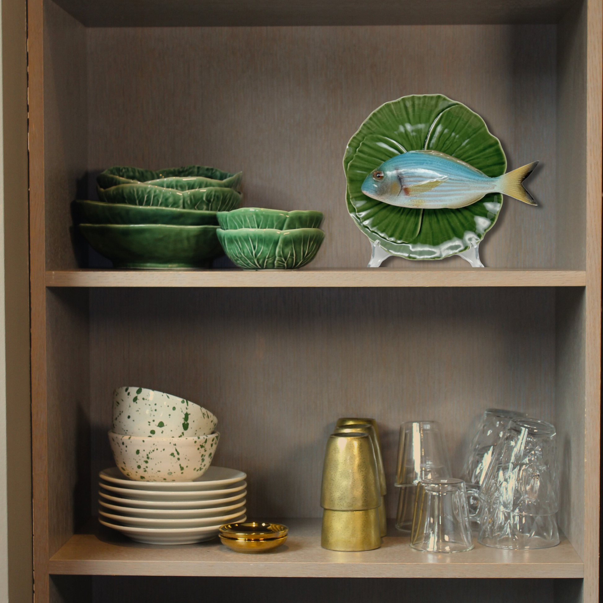 Orata medio op groen bladvormig bord, 20cm rond