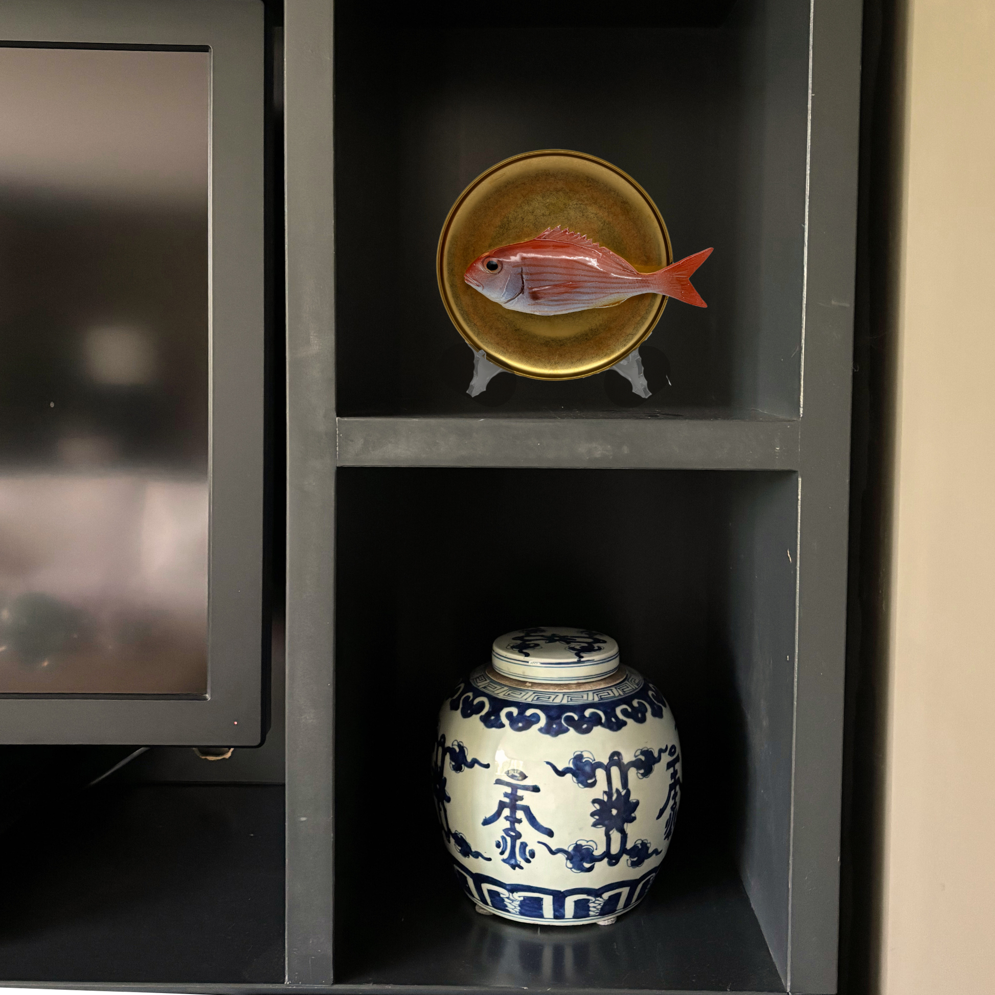 Pagello op antiek gouden bord, 16 cm rond, met aan de achterkant een ophanghaakje en kan direct aan de wand gehangen worden.