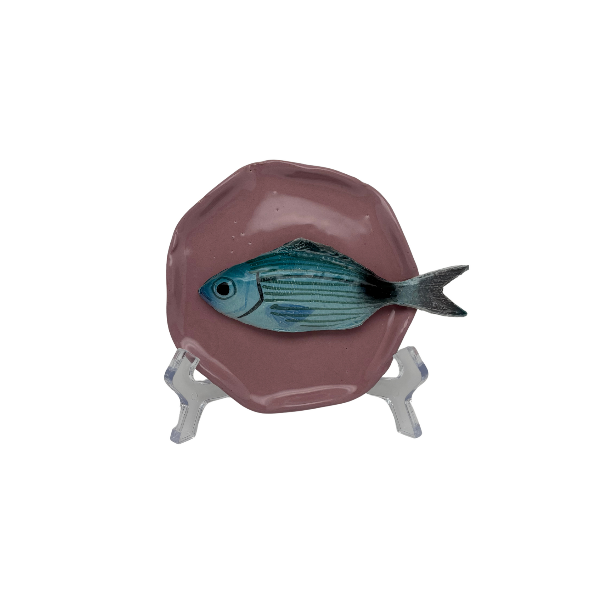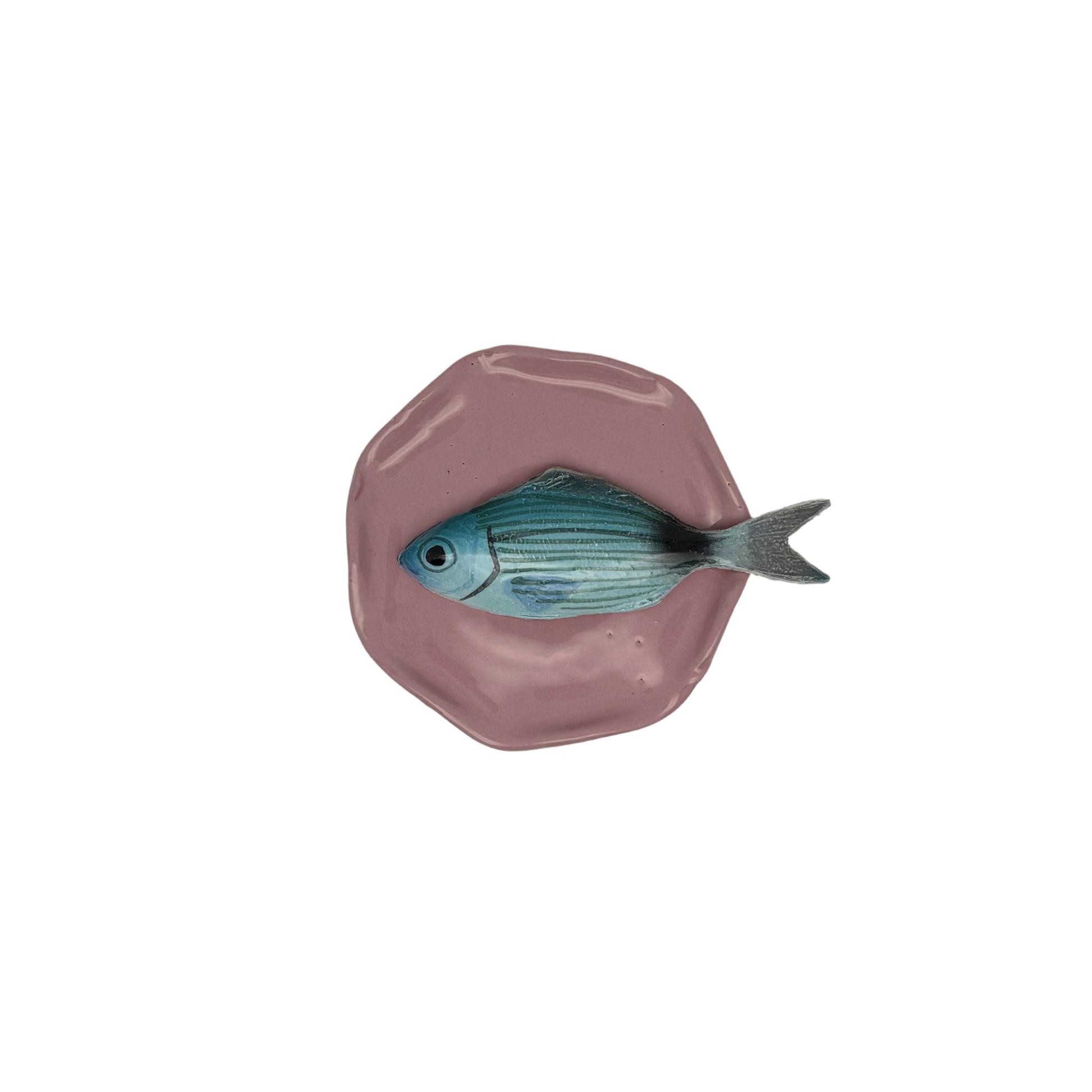 Occhiata piccolo op handgemaakt bordje lila/roze 11cm. Het bordje is niet rond maar hoekig. Aan de achterkant zit een ophanghaakje bevestigd en kan direct aan de wand gehangen worden.