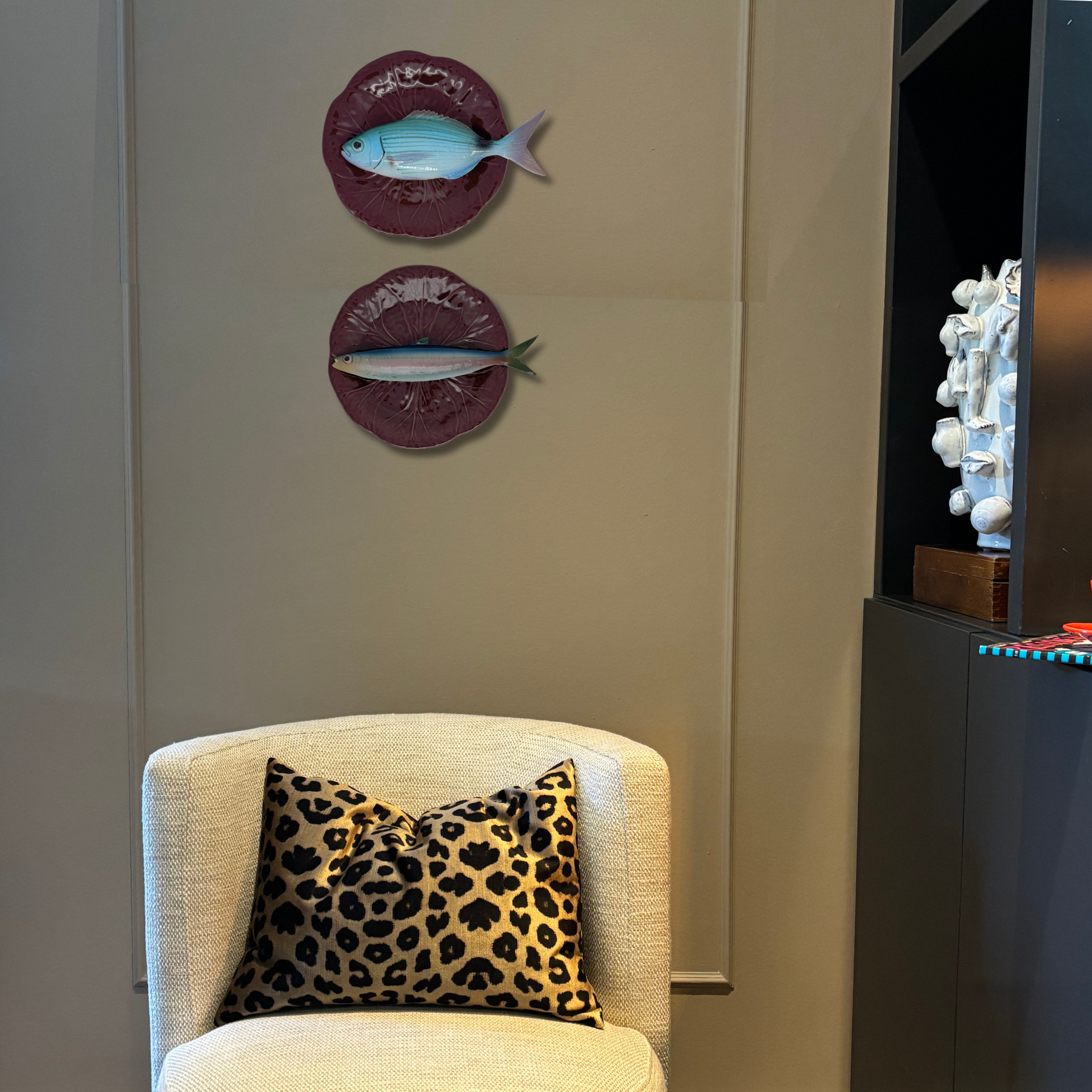Alaccia/Haring een aubergine bladvormig bord 21cm, aan de achterkant zit een ophanghaakje bevestigd en kan direct aan de wand gehangen worden.