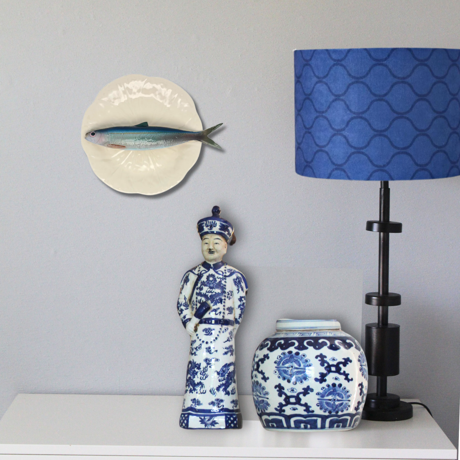 Alaccia/Haring op een créme bladvormig bord met lichte rand, 20 cm rond. Er zit een haakje aan de achterkant van het bord bevestigd en kan direct opgehangen worden.
