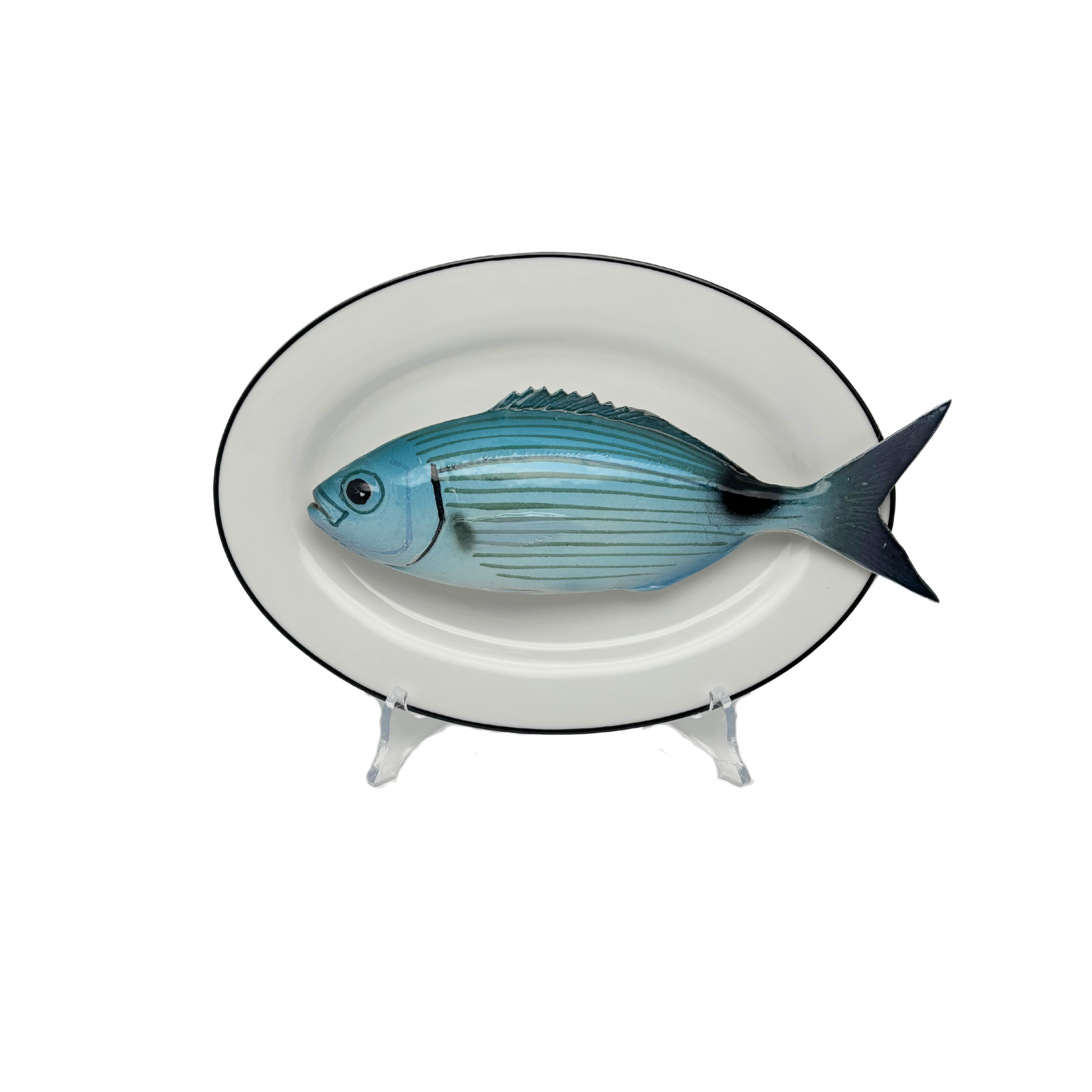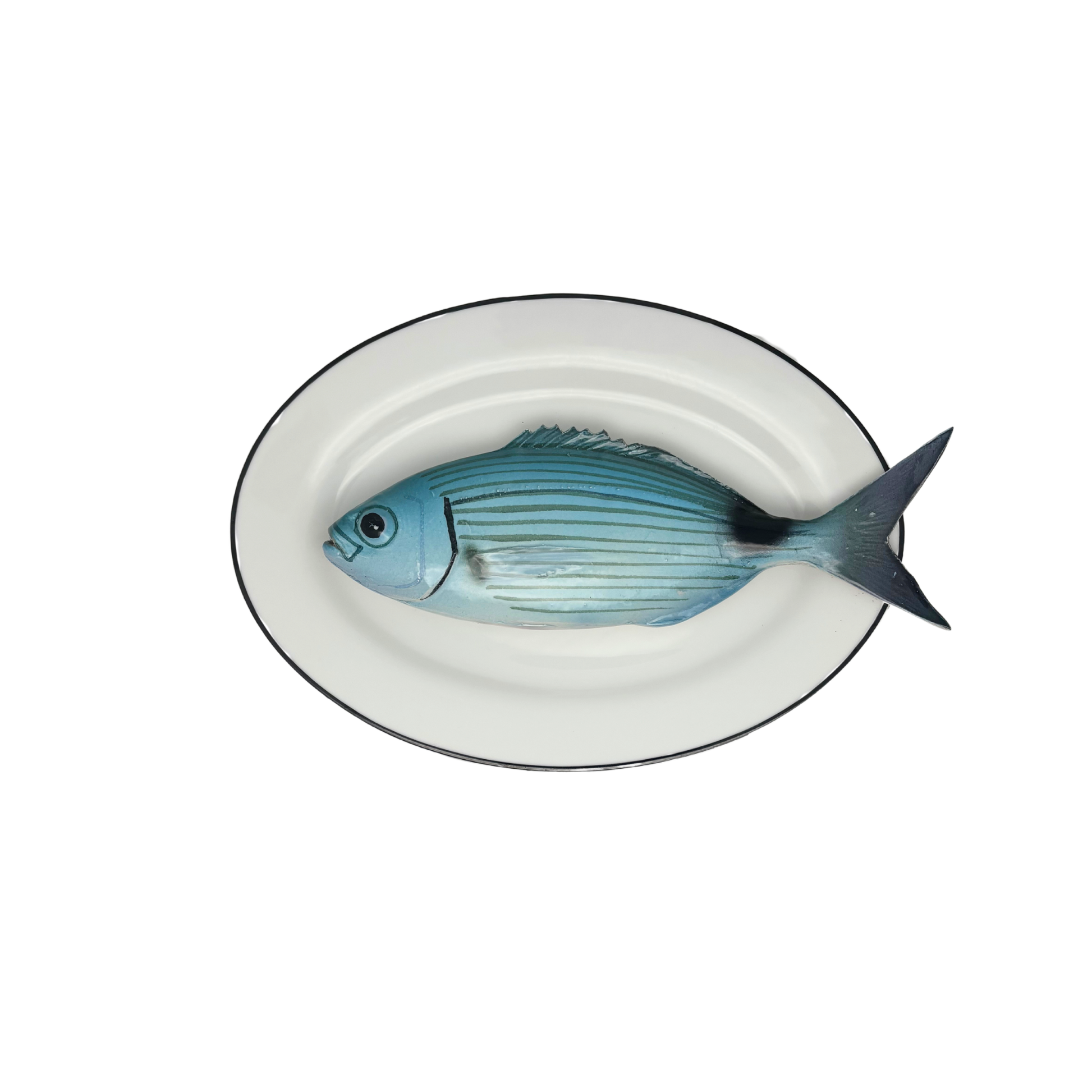 Occhiata op ovaal wit bord met donker grijze rand, 24x17cm