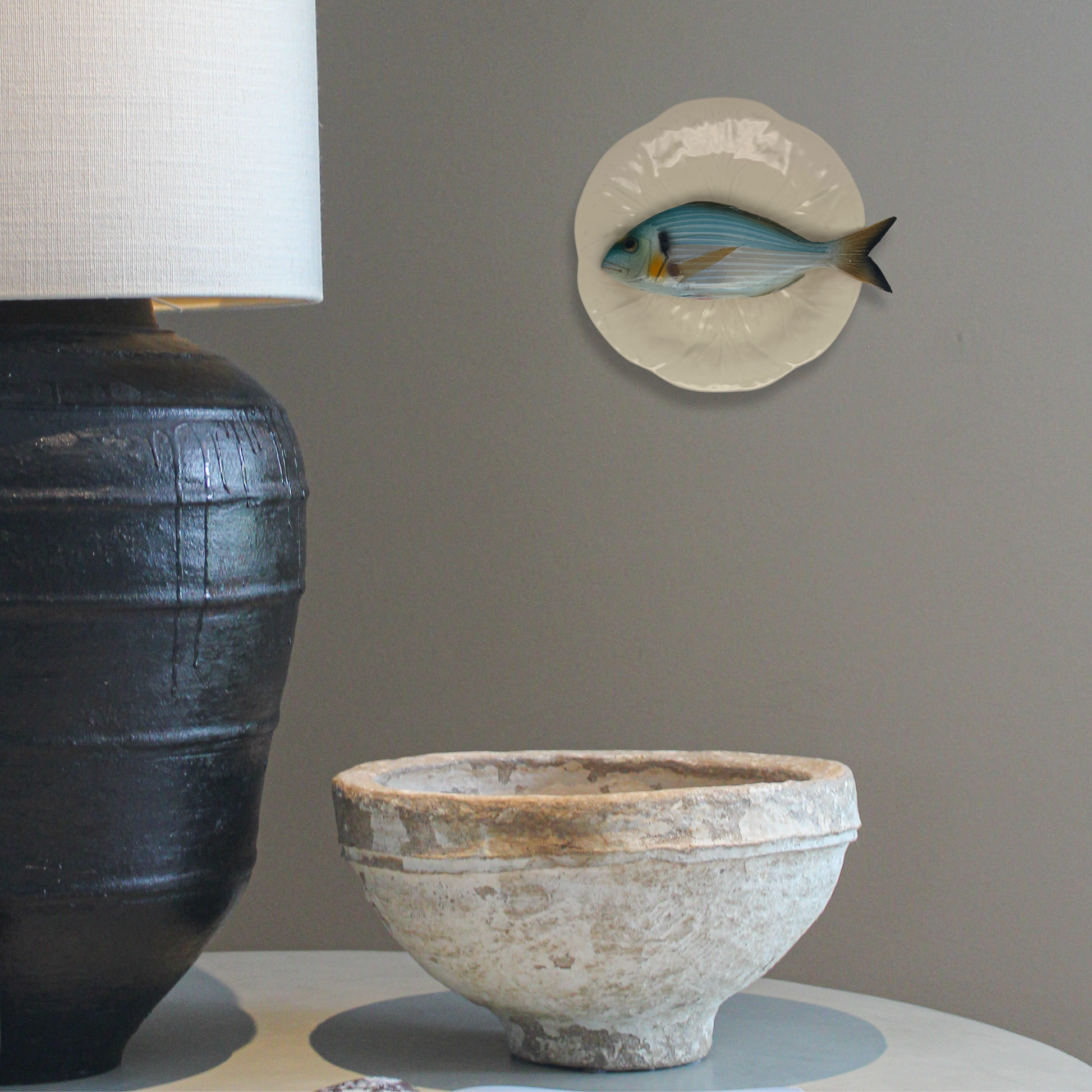 Orata op een crème/wit bladvormig bord, 21cm