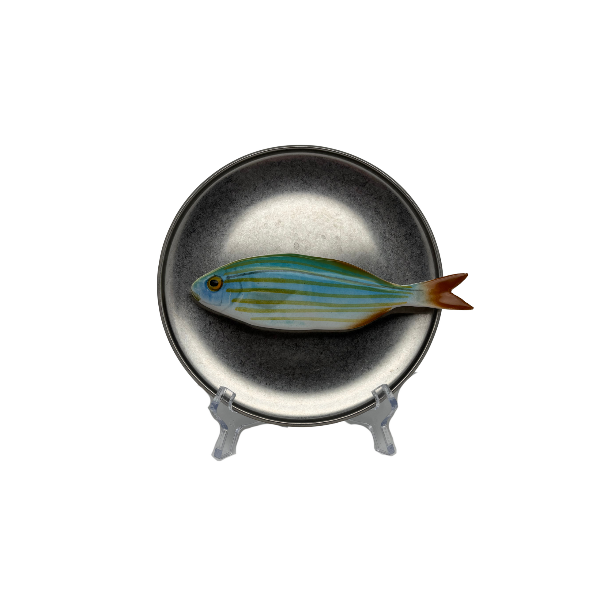 Salpa medio op antiek zilver bord, 16,5 cm rond. Aan de achterkant zit een ophanghaakje bevestigd en kan direct aan de wand gehangen worden.